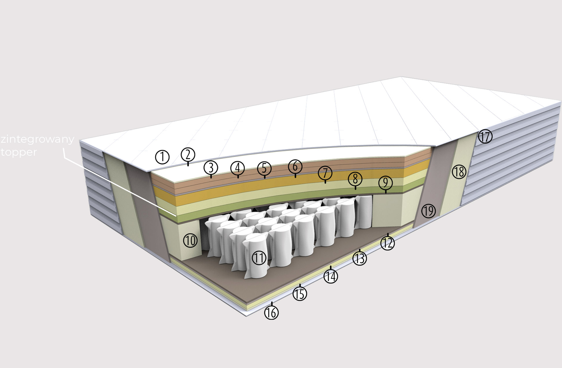 11. Sprężyna kieszeniowa 5 stref twardości, 260 sprężyn na 1m2-18cm